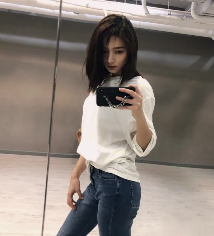 代斯长相独具个性,气质也颇为独特,无论何种穿搭,都能展现出自身魅力。这身简约风格的服装,白色T恤搭配牛仔裤,虽是极为常见的搭配,但她却穿出了青春时尚感,格外吸睛。